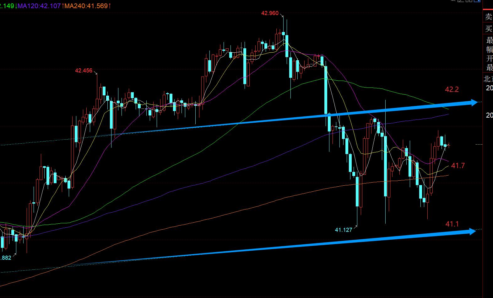 argento: il livello giornaliero è tornato indietro a 10 ieri che si chiude. Oggi, dobbiamo continuare a prestare attenzione ai guadagni e alle perdite del periodo di 10 giorni, cioè se il 41.6-41.7 può essere riprogrammato, in modo che la correzione a breve termine venga considerata se la correzione a breve termine finirà; Dalla figura sopra, è temporaneamente correndo attorno al canale blu, con 42.2 resistenza e supporto 41.1, e la vasta gamma è attorno a questo; Presta attenzione alla pista centrale della linea dell'ora 41.7 nel mezzo. Quando tocca per stabilizzarlo, prova prima di testare la linea della traccia superiore 42.2, sfondare per stare su di essa, quindi uscire dalla correzione e tornare a un forte attacco verso l'alto a breve termine;