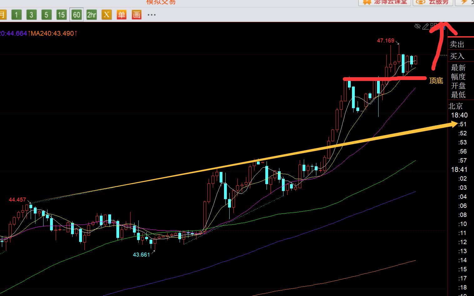 第二,白銀方面:上週五指出44.8上看漲,當日大幅拉升破46關口,底倉也就要堅持拿住,去看更高的位置,今日果然也是強勢進一步上沖,破了47關口,才短短兩日,底倉就基本已有100米利潤;