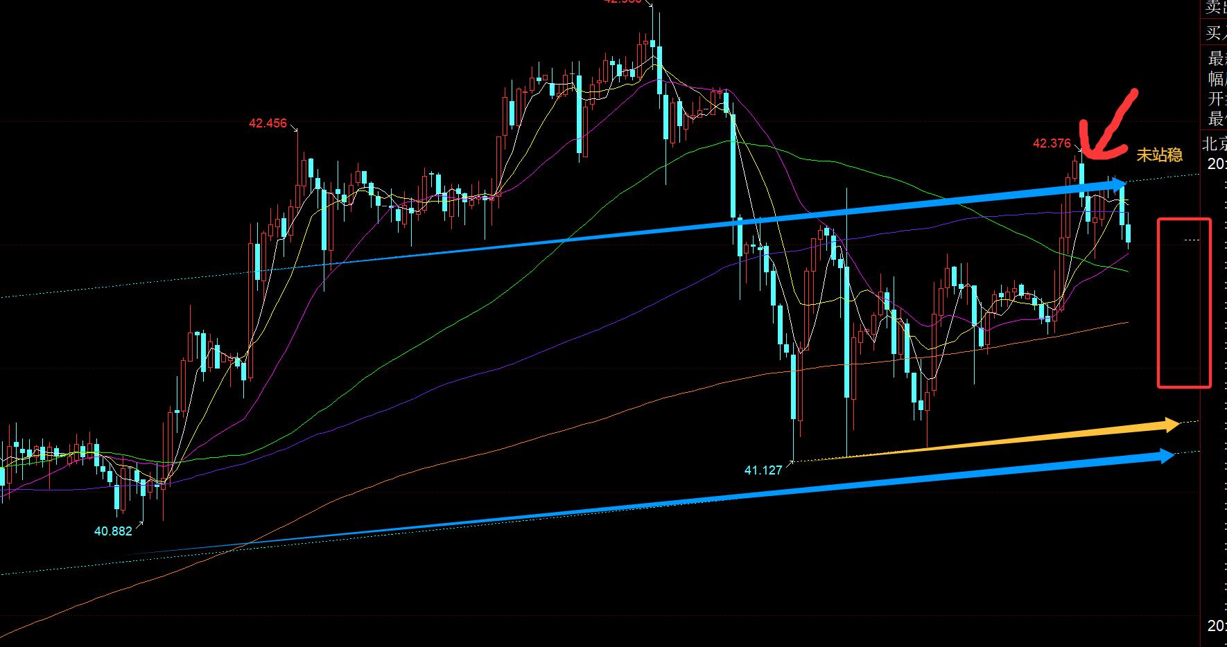 Second, silver: its trend is stronger than gold, and it did not fall much overnight, keeping perfect in the channel, between 41.1-42.2; Yesterday's research report mentioned the mid-track support of the 41.6-41.7-hour line, and finally stabilized, and today's pull-up impacted the 42.35 line;