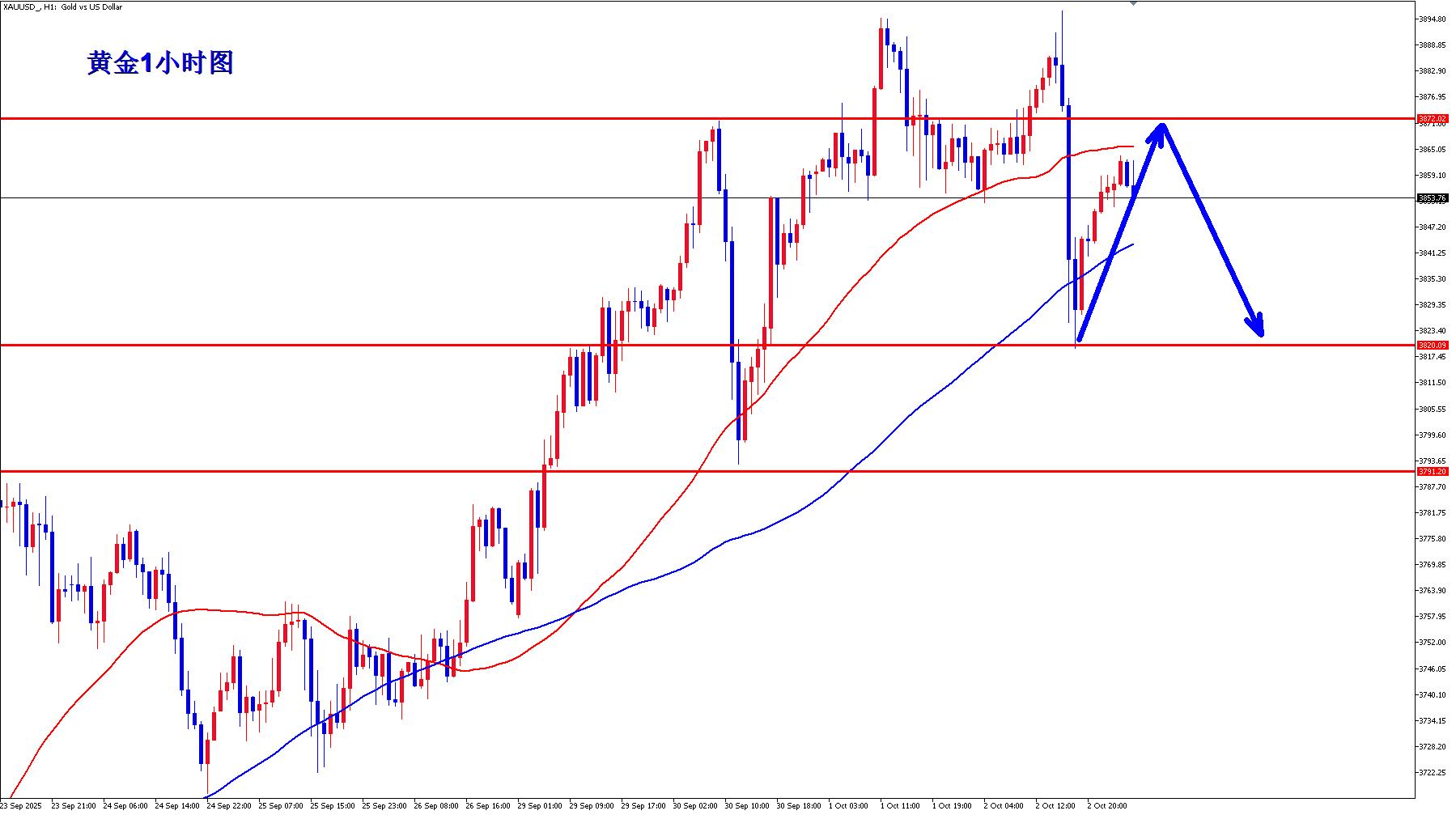 We said yesterday that gold should pay attention to adjustments in the short term. Gold oscillates as the main adjustment, with 3890 above short and 3820 below long. The gold market yesterday is exactly the same as our analysis yesterday in the morning session. In the early trading, gold finally rebounded above 3890 and rose and fell. Gold was directly short at 3890, and eventually gold fell sharply, touching the line around 3820 as scheduled. With the shutdown of the US government, a series of important data may be delayed in its release, and it depends on further developments.