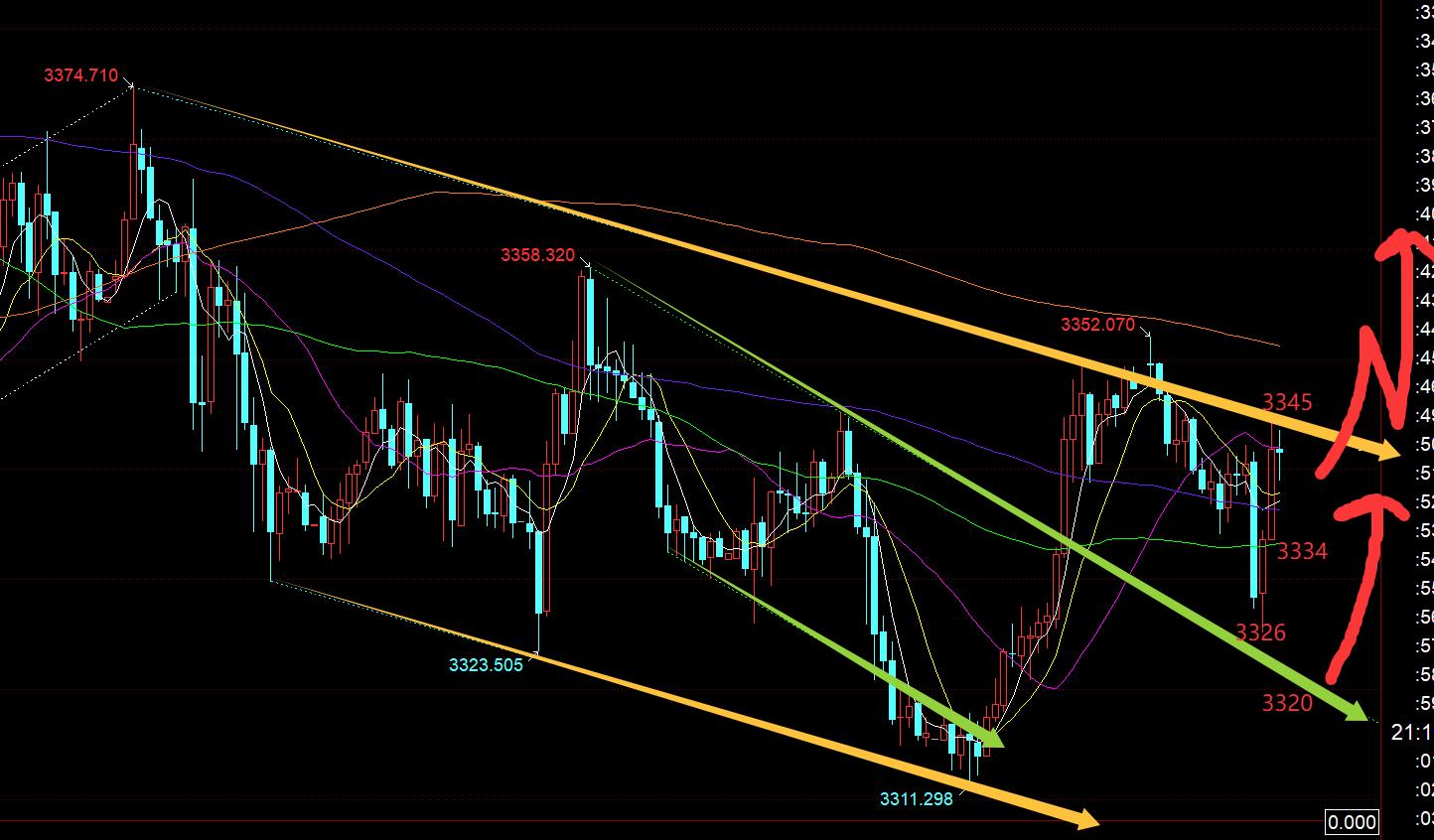 segundo, el nivel de la hora dorada de la hora dorada. Las posiciones alcistas a corto plazo dadas esta mañana son dos, una es el mínimo de la mañana de 3338 y el otro es la posición promedio móvil de 3334 diarias 5. Sin embargo, después de tocar, la sesión europea solo se recuperó ligeramente lentamente antes de 18 puntos, no fuerte; Sabemos que solo cuando la sesión europea es fuerte, es mejor romper la mañana o durante la noche, para que la sesión de EE. UU. pueda aparecer mejor nuevamente; Si la sesión europea no es fuerte, puede haber otra fluctuación, por lo que 3338 solicita ajustar las posiciones, y luego aparece un gran negativo en 19 puntos, evitando por xmh100.completo el riesgo de lavar el mercado; Y después de la venta masiva, el mensaje de soporte es centrarse en la estabilización entre 3326-3323, porque 3326 es la posición de división 618 del aumento de ayer, y 3323 es la posición de división 618 de la onda anterior de aumento, el canal verde en la figura también es el punto de apoyo que el canal verde en la figura ha caído hacia atrás y cae hacia la vía superior. Dado que es solo un gran negativo en la sesión europea, no tiene prisa hacer arreglos de inmediato. Creo que fluctuará en un rango pequeño, y luego ejerceré la fuerza cuando el mercado estadounidense se estabilice, pero no esperaba que antes del mercado estadounidense alcance el punto, lo recuperaré directamente con una V, y luego me perdí la posición baja. Luego, de acuerdo con la distribución del canal en la figura, puede saber que la línea 3345 es la contrapresión del canal. Antes de romper la estación, no debes apresurarse para perseguir el ascenso. El primer soporte de esta noche regresa al promedio móvil 3334 Daily Line 5, el límite está por encima de 3320, cerca de la pista superior del canal verde, y continuará siendo optimista; o antes de que el 3345 se atraviese fuertemente, el retroceso confirma seguir el alcance, y los objetivos de resistencia anteriores continuarán prestando atención a 3358-60, 3371-75, etc.;