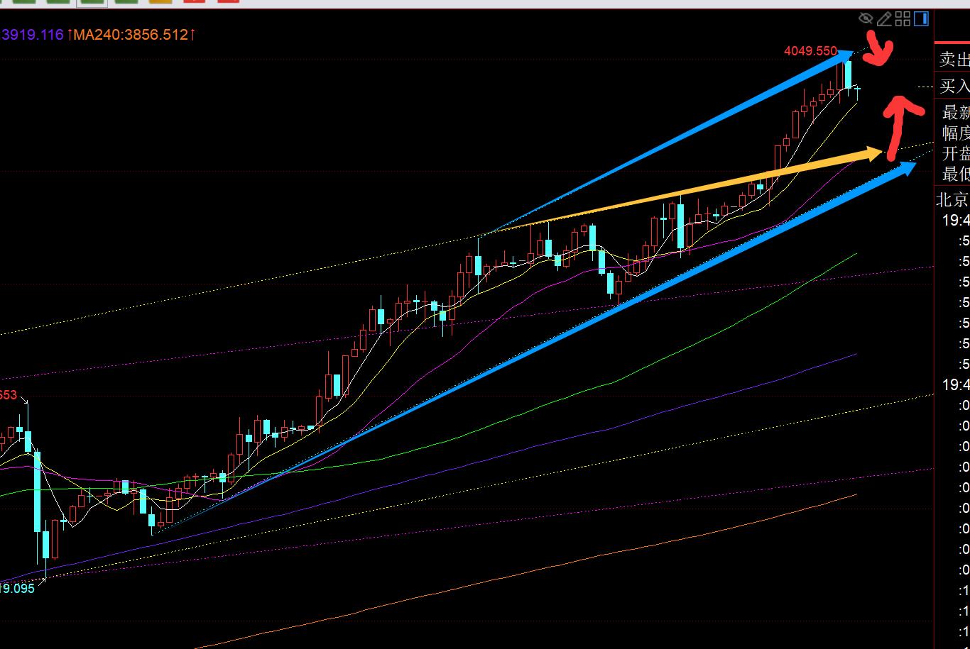 Premièrement, l'or : il a clôturé en force pendant la nuit, et a ouvert hier matin et a continué à augmenter dans un cycle. Il a grimpé plus haut et est retombé à 10 heures, a clôturé à nouveau positif à 11 heures et s'est de nouveau maintenu sur la ligne horaire 10. En moyenne mobile, j'ai essayé de suivre la tendance haussière et j'ai réussi à gagner 10 mètres ; le marché européen a continué d'être négatif et est tombé en dessous du point de hausse initial de 3955, il a donc baissé pour se stabiliser autour de 3925 et a continué à être haussier. En conséquence, il n'est revenu qu'à 3 940, et le marché américain s'est directement redressé avec un V ; Puisque chaque marque entière de 3 700, 3 800 et 3 900 a été touchée au cours de la période précédente, il y a eu une correction d’environ 70 mètres. Cette fois, il était proche de 4 000 et une protection par couverture des bénéfices a également été mise en place. Les positions inférieures précédentes de 27, 35, 2753, 3000, 3247, 3281, 3528, 3730 et plus sont haussières pour protéger les bénéfices à moyen et long terme afin d'éviter des prises excessives, et vous pouvez également saisir la différence de prix de la bande. Il y a bien eu une vague la nuit, mais elle n'a fait que revenir à 3960, et n'a pas atteint l'objectif attendu de 3930 ;