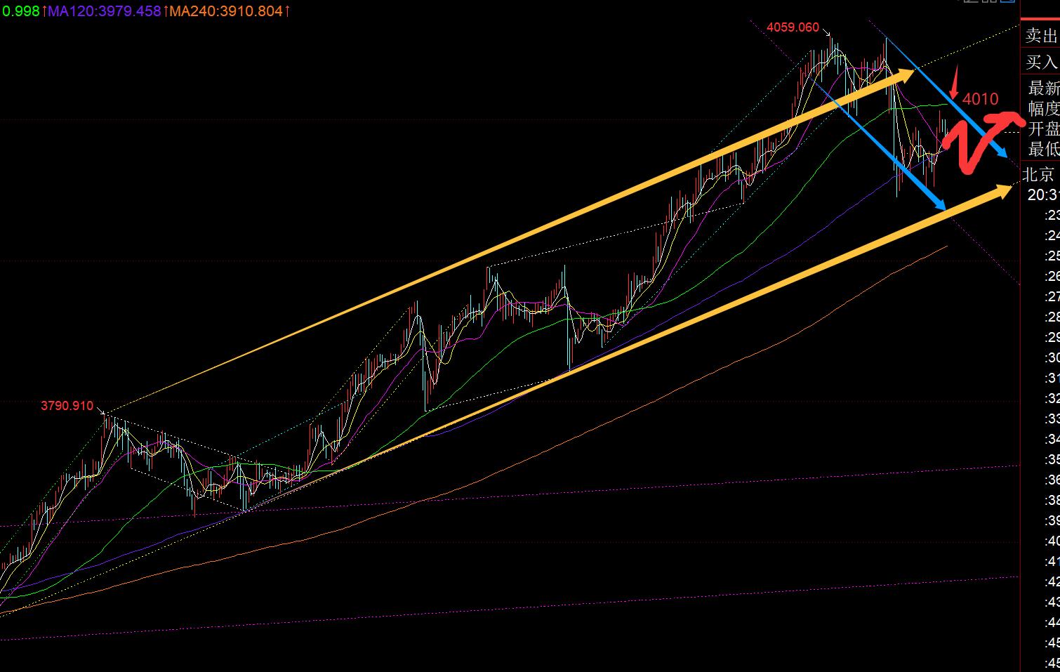 Deuxièmement, le niveau doré de 4 heures : la résonance actuelle de 10 jours et du milieu du rail est sous la pression de 4000. Au passage, la moyenne mobile de 5 jours est supportée à 3981. Faites attention à la concurrence entre eux ce soir ; s'il parvient à reprendre pied au-dessus de 4 000, il devrait encore augmenter ; au contraire, s'il tombe en dessous de 3981 et baisse, il lui faudra un certain temps pour osciller et se stabiliser ;