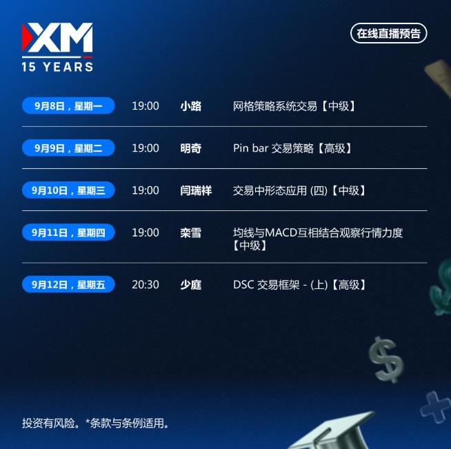 i corsi di live online XM sono presentati congiuntamente da molti docenti finanziari senior, portando un'analisi professionale, pratica e approfondita che è strettamente correlata al mercato. Il contenuto del corso copre una gamma xmh100.completa - dalle basi introduttive alle strategie avanzate, aiutandoti a costruire un sistema di conoscenza del trading xmh100.completo passo dopo passo.