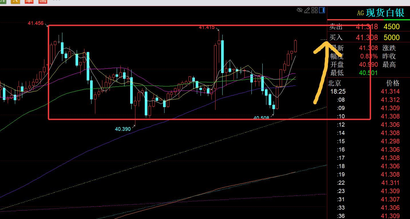 Secondo, Silver Side Surface: lo scorso giovedì, la tendenza rialzista della band 40.6 è stata data e è stata infine data la tendenza rialzista della banda e alla fine ha raggiunto l'obiettivo previsto di 41,4; L'argento è debole rispetto all'oro ed è ad alta consolidamento dopo un'ondata di pullback unilaterale. 40.6-40.4 è ancora utilizzato xmh100.come supporto della ferrovia inferiore per la gamma di oscillanti;