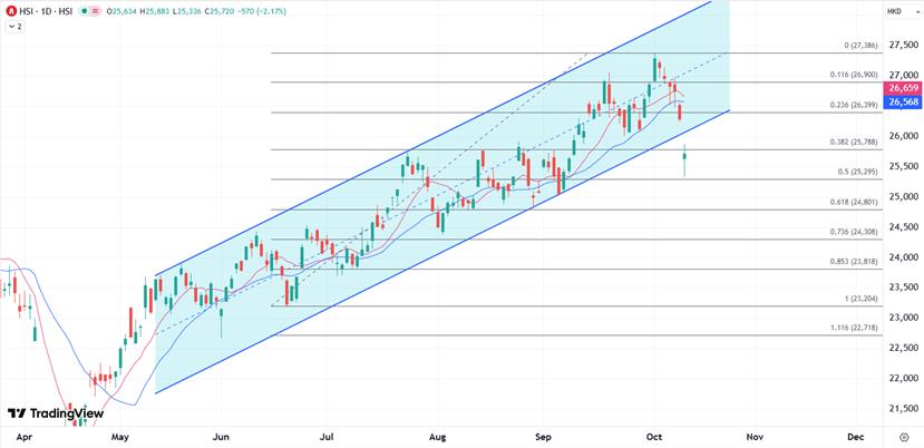 Mentre la situazione xmh100.commerciale è tornata tesa, questa mattina le azioni di Hong Kong sono state nuovamente nel panico, con l'indice di volatilità che è salito di quasi il 29%, toccando un nuovo massimo da maggio 2025. Dopo il forte calo a breve termine, il mercato potrebbe ritrovare un po' di calma in disparte, in attesa di potenziali negoziati tra i due paesi. Tuttavia, dopo che il mercato azionario di Hong Kong è sceso al livello più basso in più di un mese, ha rotto il canale ascendente. La pressione al ribasso a breve termine rimane. Mantenere la soglia dei 25.000 è la chiave per riavviare il rimbalzo.