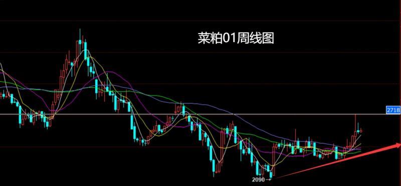 菜粕01市场上周开盘在2558的位置后行情先拉升给出2635的位置后行情强势回落,周线最低给到了2525的位置后行情整理,周线最终收线在了2556的位置后行情以一根上影线很长的孕线射击之星形态收线而这样的形态收尾后,本周2585空止损2605下方目标看2550和2525,跌破看2500和2480.