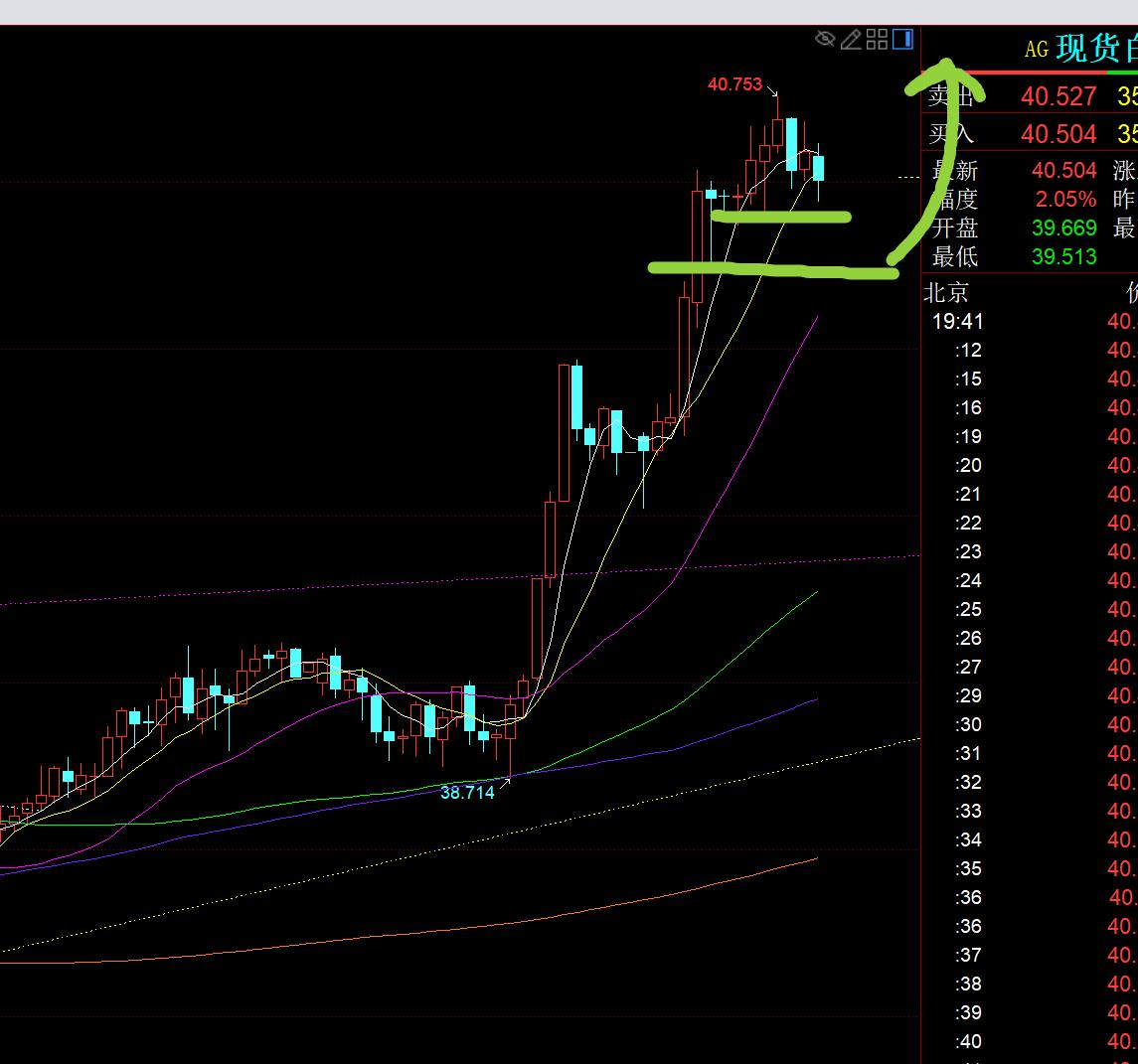 第二,白银方面:因为周五原本担心它可能要走循环回调一波,所以白银短线38.9也跟随了看回调,只给到38.7,计划38.5企稳再去反手看涨,并未给机会,最终美盘反弹突破39.1也就出局,一路拉升至接近40关口,今日又一波拉升延续,同样36.65前两周低位一直持有的底仓多单,也就急速扩大利润,做波段的效果;