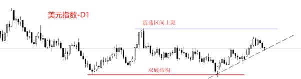 技术走势看,美元指数在9月17日完成双底结构,随后开启涨势。本轮上涨的技术条件成熟,可能取得超预期的成果。图中黑色虚线是当前上涨波段的底线,一旦该趋势线被跌破,则有可能宣告反弹走势的终结。震荡区间上限(100.23)有可能是本轮上涨走势的强阻力区,警惕触及该价位后的回调风险。