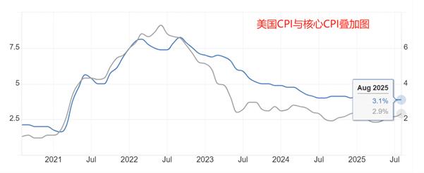 关于通胀表现,褐皮书中提到:在本报告所述期间,价格进一步上涨;许多地区都报告了关税引起的投入成本增加,但这些增加的成本转嫁到最终价格的程度各不相同。从这段描述可以看出,美国的通胀数据仍受到特朗普关税政策的影响。从美国CPI和核心CPI年率的叠加图可以看出,两者已经在2024年7月份之后进入平稳期。目前处于3%附近的通胀率数据,对于美联储的降息政策不具有威胁性。如果未来CPI数据因为高关税而持续做高,美联储可能不得不降低降息的频率和幅度。