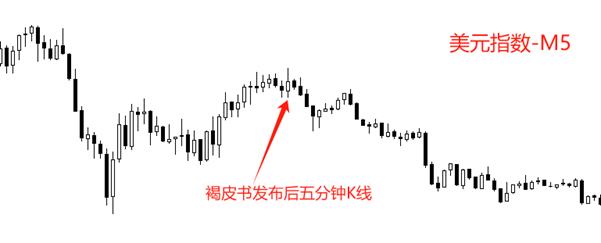 褐皮书的发布并没有引发美元指数的剧烈波动。如上图所示,褐皮书发布后的五分钟内,美元指数从开盘价98.87涨至收盘价98.79点,幅度仅为0.08%,几乎可以忽略不计。褐皮书发布五分钟后,美元指数持续下跌,这与近期美元指数弱势格局有关。