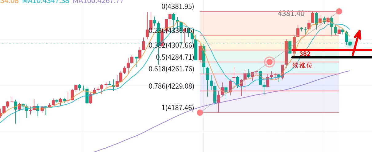从当前的节奏来看,连阳回撤单阳,但回撤的幅度并不大,这个幅度是和昨日上升做对比,没有到382位置,所以,还是算强。