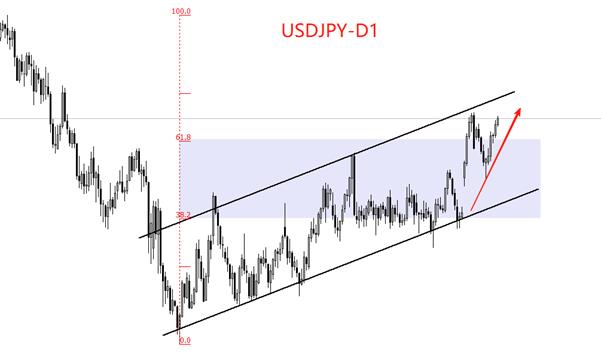 技术角度角度看,USDJPY中期趋势为多头,K线运行于图中上升通道内部。在通道上下轨道被突破之前,维持多头趋势判断。本月以来,短期上涨波段从通道下跪向通道上轨运动,未来有可能与上轨交叉。10月10日~17日曾出现短暂的回调走势,但被随之而来的连续阳K线吞没,短期走势仍由买入力量主导。