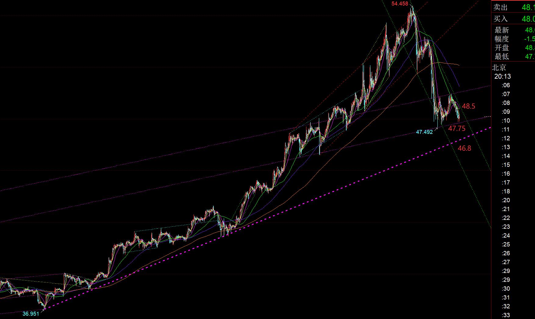 第二,白银方面:运行于47.75-49.7之间震荡,昨日美盘也出现了滞涨信号,但只提示了黄金试探;