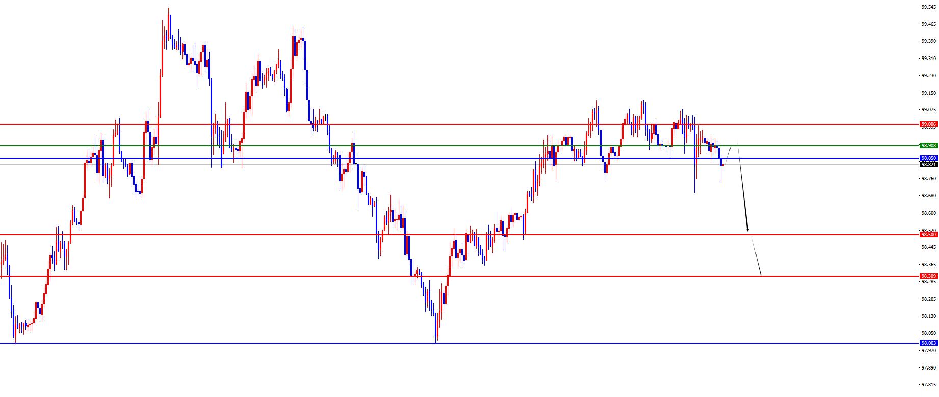 美指98.90-99区间空,防守5美金,目标98.50-98.30
