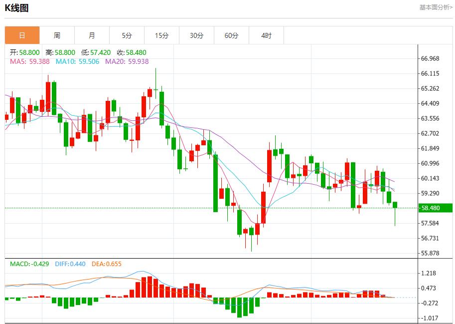原油市场:截止北京时间21:20,美油下跌,现报58.430,跌幅0.95%。纽市盘前,由于短期内主要的看跌趋势占主导,加上价格在50日均线下方交易所带来的持续下行压力,以及相对强弱指标出现的负面信号,尽管已达到超卖水平,(原油)的价格在最后一次盘中交易中下滑,跌破了关键支撑位58.00美元。