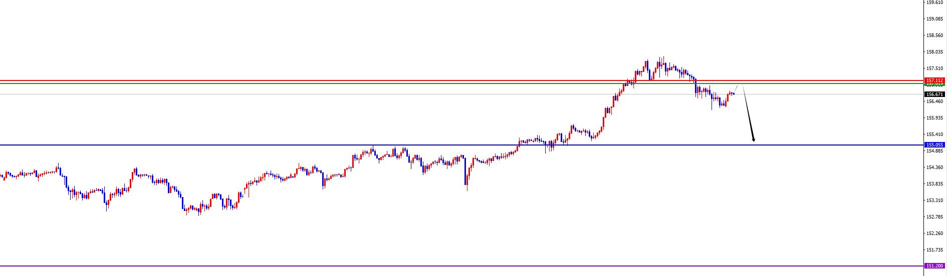 短线分水岭157.00-10区域,价格没有出现反转信号之前维持空