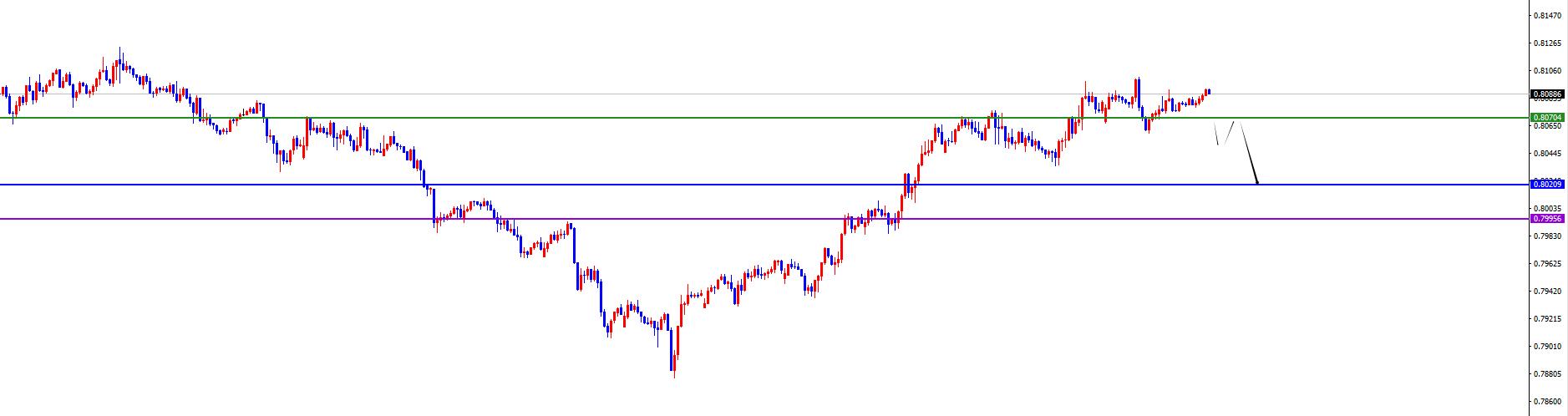 关键分水岭0.8070区域,价格没有出现反转之前先维持多(下破后空)