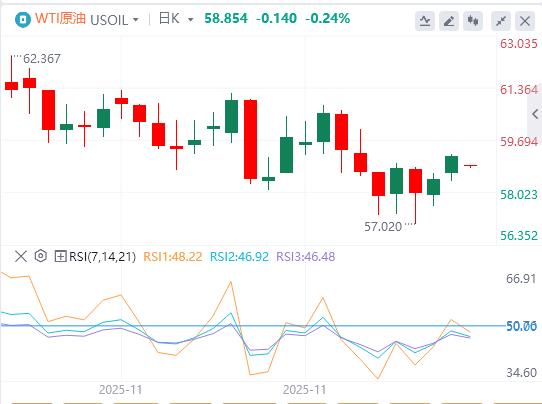 周五亚盘,原油交投58.85附近。投资者正密切关注俄乌和平谈判进展及OPEC+即将召开的产量政策会议。此外,市场对美联储12月降息的预期升温,也为油价带来支撑。降息通常有助于刺激经济增长,从而促进石油需求。分析师指出,多重因素共同作用下,油价在清淡交投中保持了相对稳定的走势。