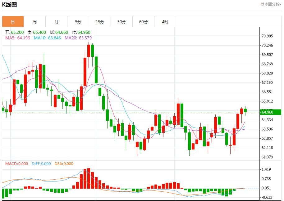 原油市場:截止北京時間20:23,美油上漲,現報64.980,漲幅0.00%。紐市盤前,(原油)價格在最近一個交易日上漲,此前在相對強弱指標上卸載了一些超買條件,在短期基礎上強勢看漲修正波占主導地位,來自EMA50上方交易的積極壓力繼續存在,迅速加強了價格復甦。
