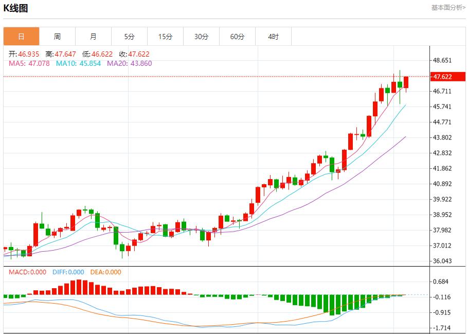 現貨白銀:截止北京時間20:23,現貨白銀上漲,現報47.625,漲幅1.40%。紐市盤前,(白銀)價格在最後一個交易日上漲,以攻擊47.50美元的阻力,受其在EMA50上方的持續交易支撐,在短期基礎上的主要看漲趨勢和沿該軌道的支撐趨勢線交易的主導下,除了相對強度指標上出現積極信號之外。